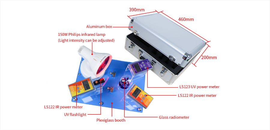 Cam filmi satış kiti, sırasıyla dış mekan güneş ışığında kızılötesi ve ultraviyole ışınları simüle etmek için ultraviyole fenerler ve ayarlanabilir ışık yoğunluğuna sahip orijinal Philips kızılötesi lambalarla donatılmıştır. Cihaz ayrıca kolay kurulum ve paketleme için pleksiglas kabin ve özel bir alüminyum kutu ile donatılmıştır.