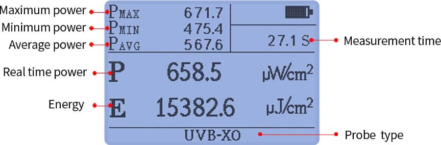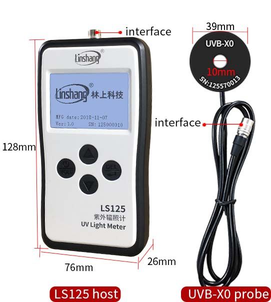 LS125 UV ışık ölçer, 9 farklı tipte probu destekleyebilen akıllı bir ana bilgisayardır. Ana işlevi veri görüntülemedir. UVB-X0 probu, LS125 ana bilgisayarıyla donatılmış 9 probdan biridir. Probun spektral yanıt aralığı 280nm-315nm'dir, bitki büyüme lambası, sürüngen lambası, fototerapi lambası, kaynak ark ışığı gibi 297nm,308nm,313nm UVB ışık kaynaklarının yoğunluğunu ve enerjisini tespit etmek için uygundur.