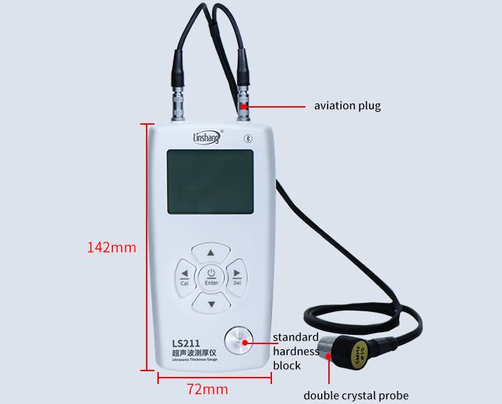 Tahribatsız bir test aracı olarak, LS211 ultrasonik kalınlık ölçer, çelik, plastik, cam gibi çoğu malzemenin kalınlığını ölçebilen alt tabakaların kalınlığını tespit etmeye yardımcı olmak için çift kristal dönüştürücü ve az miktarda ultrasonik bağlayıcı kullanır. seramik ve benzeri