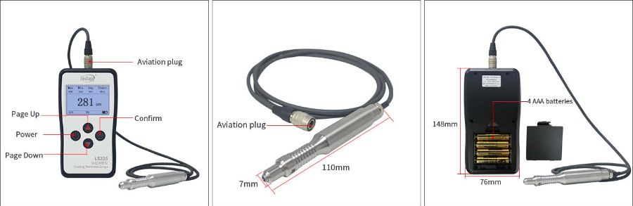 LS225+F500, ayrı ana bilgisayar ve prob içeren bir kaplama kalınlığı ölçerdir. LS225+F500 çoklu prob kaplama kalınlığı ölçer ana bilgisayarı ve F500 probundan oluşur. LS225+F500 kaplama kalınlık ölçer, demir ve diğer ferromanyetik metal yüzeyler üzerindeki bakır, çinko, kalay, krom ve manyetik olmayan kaplamaları tespit etmek için özel olarak kullanılır. Kaplama kalınlık ölçer, ultra yüksek ölçüm doğruluğuna ve tekrarlanabilirliğe sahiptir. 10μm'nin altındaki ultra ince kaplamaların kalınlığını ölçmek için kullanılabilir. LS225+F500 kaplama kalınlık ölçer, metal işleme endüstrisinde, donanımda ve diğer endüstrilerde yaygın olarak kullanılmaktadır ve özellikle minimum ölçüm alanı çapı yalnızca 7 mm olan küçük boyutlu malzemeleri test etmek için uygundur.