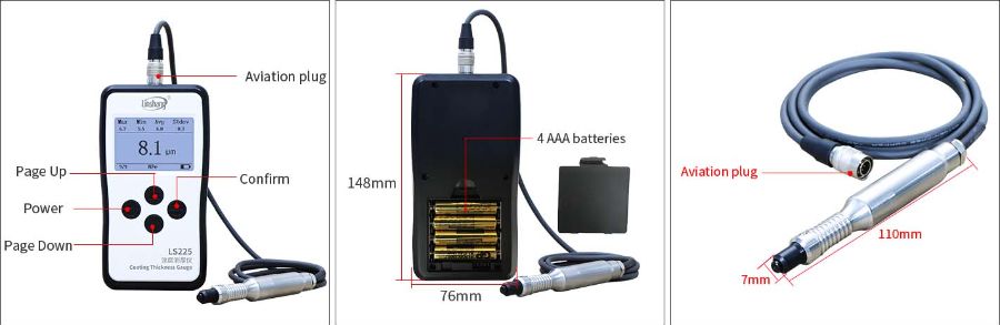 LS225+N1500 kaplama kalınlığı test cihazı, üretim denetimi, inşaat kabulü, satış ve sergi alanlarında kullanılabilir. Manyetik olmayan metal yüzeyler üzerindeki iletken olmayan kaplamanın kalınlığını hızlı ve tahribatsız bir şekilde ölçebilir. Bu kaplama kalınlığı ölçüm cihazı, havacılık, yapı malzemeleri, makine, kimya, mühendislik ve enstrümantasyon vb. sektörlerde kullanılabilir.
